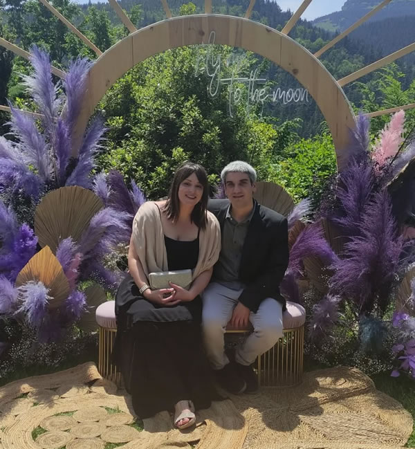 Nuestra historia empieza como empiezan muchos temazos: con una entrada inesperada. Mikel tenía un local con sus amigos y, según él, yo no debía entrar. Pero como toda buena protagonista de rock, entré igual. Al principio ni quería sentarme a su lado, pero él insistía… y empezó a hacerme reír. Y ya se sabe: la risa es el primer riff que te engancha sin que te des cuenta.